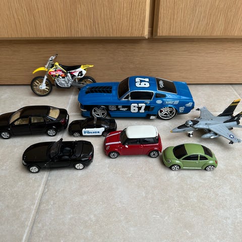 5 biler/bus/lastbil og vejskilte. Sælges samlet for