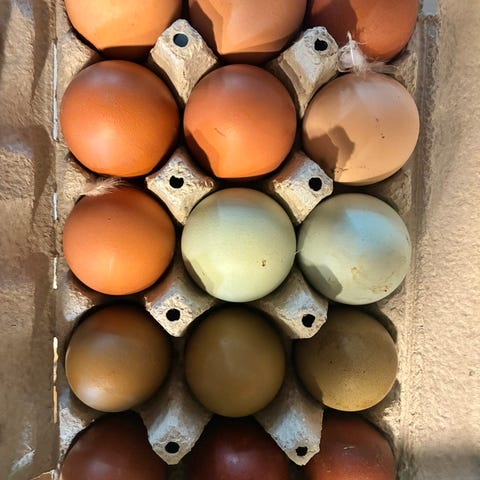 Rugeæg af min fritgående farverige trup leder efter en andemor eller rugemaskine! Æggene kontrolleres manuelt for at se, om de er befrugtet.