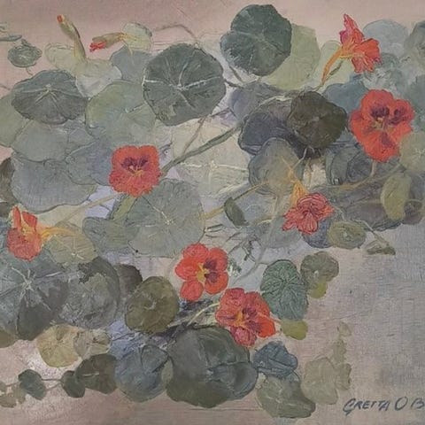 Smukt og unikt indrammet patchwork “Menneskenes Jord” af Ulla Brita Gregersen (1980)