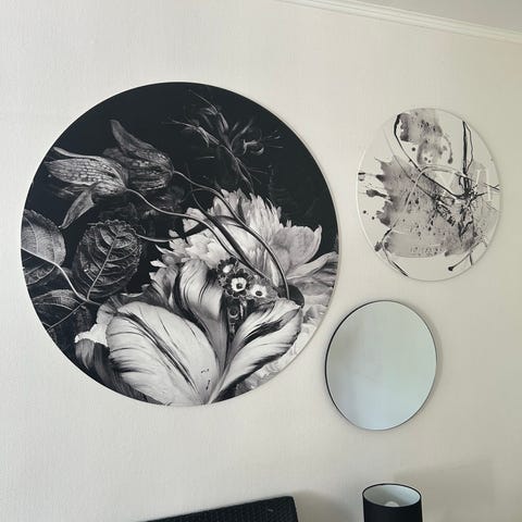 Svært at beskrive det 3 dimensionel, der er spejl og malet glas.