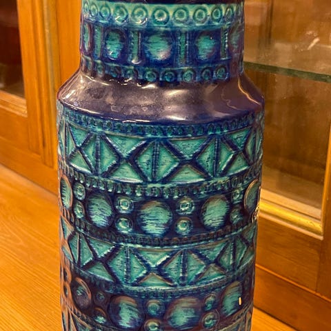 LYSKÆR 57-25, Flot lampe fra 1970'erne I blå/grønne farver og I flot stand H med skærm 45 cm
