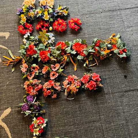 Flotte lyskranse i hvid, blå og en enkelt gul. I alt 9 stks til 10 kr/stk, eller samlet til 75 kr. Vil være smukke til festbordet, fx til konfirmation, bryllup eller dåb.