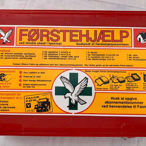 Et stk Retro Falck førstehjælpskasse rød med original skum