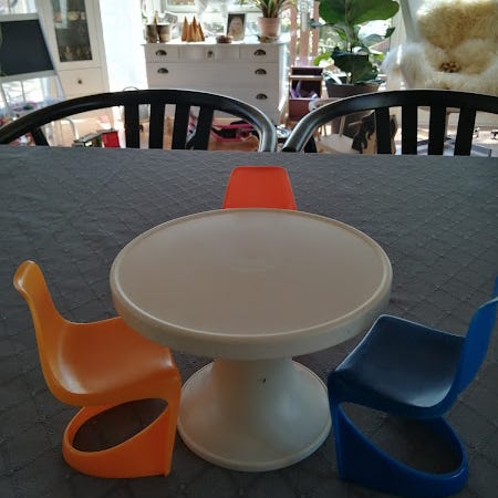 Et sæt miniature dukkemøbler, modelmøbler af Juindrich Halabal (Tjekkiet).