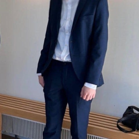 Flot Jack & Jones jakkesæt i farven navy blå til feks konfirmanden. Både blazer og bukser er i str. 164. Modellen hedder JPRsolar Noos.