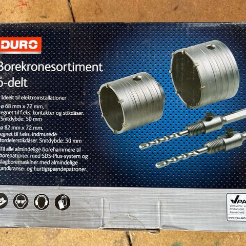 Indhold: 1 spiralbor venstre og 1 spiralbor højre. ! forsænker venstre og 1 forsænker højre. 1 gevindtap, 1 håndtag. 1 stor og 1 lille skruetrækker.