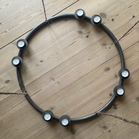 Højden er 116 cm lysekronen med de 4 arme måler 25 x 25 cm
