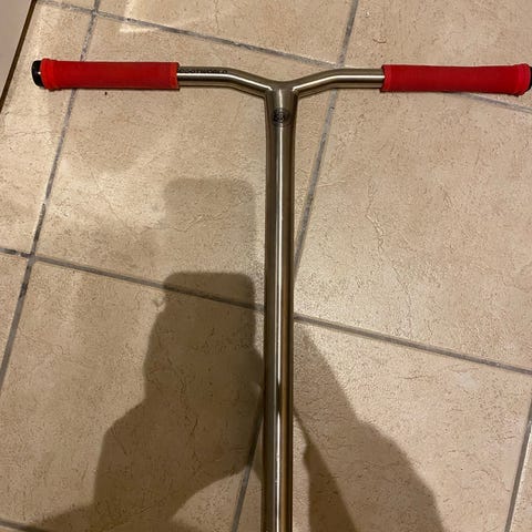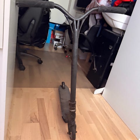 Her medfølger et apex deck, scootworld clamp og et par næsten helt nye hjul.
