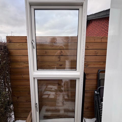 Mål 1,20 x 1,20 m dobbeltvindue i super stand. Med karm.