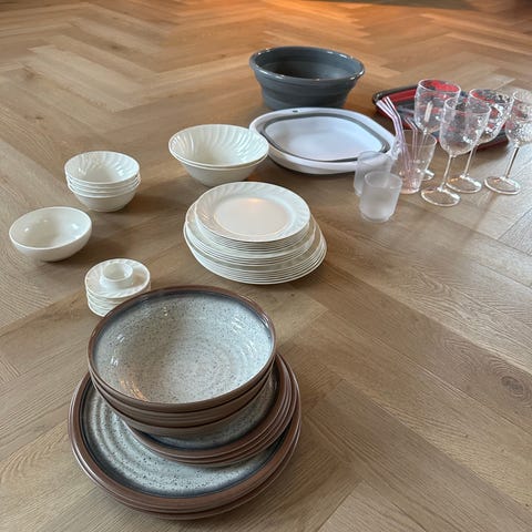 Stel til 8 personer. Brugt få gange i campingvogn. 200 kr for alle 47 dele.