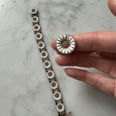 Armbånd, forgyldt, Georg Jensen, Pænt Georg Jensen Marguerit armbånd, skulle iflg. vores lokale antikvitetshandler være fremstillet tilbage i 70´erne. Designer Anton Michelsen. Bemærk, at der er et ganske lille afslag på ét af bladene på en af margueritterne, - se billede.