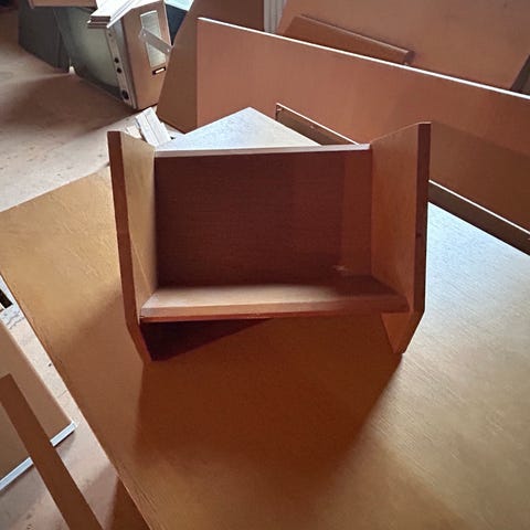 Flot vægmonteret teakhylde i klassisk dansk design.