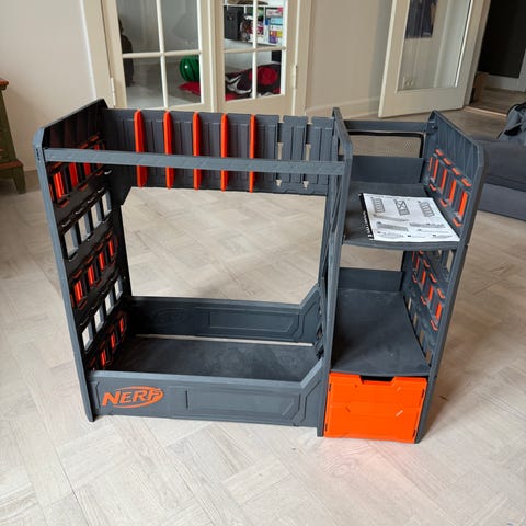 Værktøjsvæg brugt til ophæng af NERF-pistoler og kurve til skud