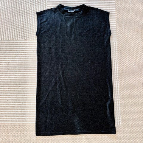 Matr 49% bomuld, 49% akryl og 2 % lurex. Brystvidde ca 2x55 cm og længde ca 85 cm