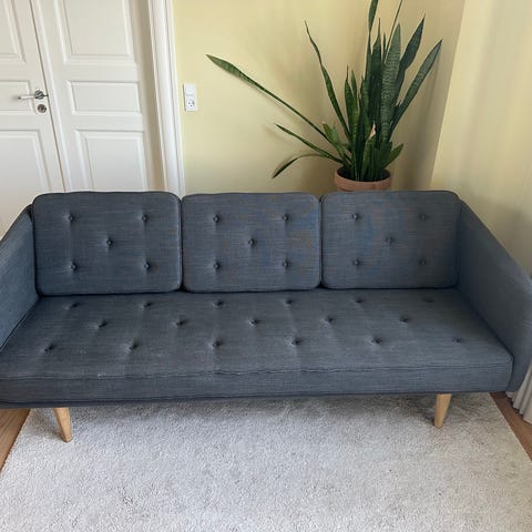 Sofaen er blevet gennem renoveret hvor alt fra stof og bund er renoveret, sofaen står i super fin stand og uden fejl.