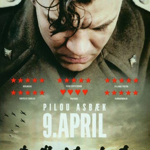 9. April (UÅBNET, stadig i folie), instruktør Roni Ezra, DVD, drama, /Historisk film/Krigsfilm. Fra 2015. Med ekstra materiale. Med bl.a. Pilou Asbæk, Lars Mikkelsen, Morten Hauch-Fausbøll, Mette Munk Plum og Jesper Hagelskær Paasch.