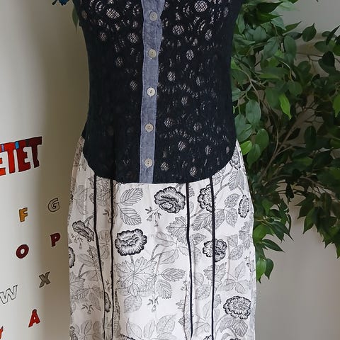 Meget sød kjole i cotton og polyester. Mål længde: fra nakke og ned : 90 cm. Bryst fra ærmegab til ærmegab: 51 cm