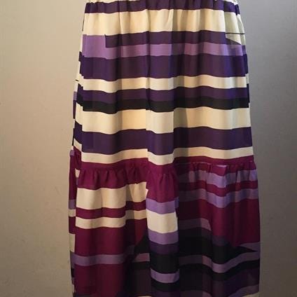 Farver: Rød, hvid og sart lyserød. 100% silke. Med bælte og flot detalje på forstykket. Brugt én gang. Fra røgfrit og dyrefrit hjem.