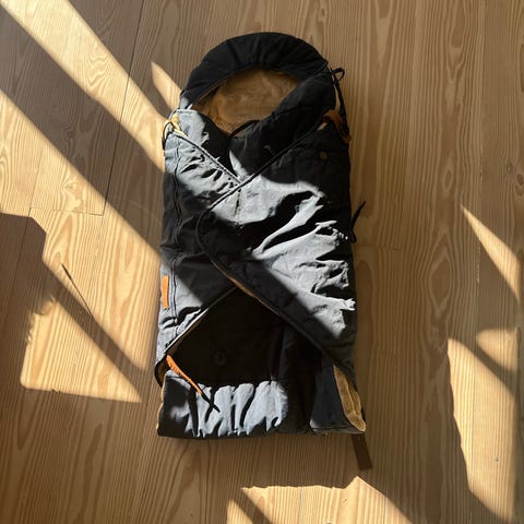 Der er en enkelt knap på soveposen, der er knækket, se billede, men den kan nemt udskiftes hvis man ønsker det. Det har dog ikke haft betydning for funktionen af soveposen.