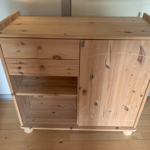 Smukkeste fyrretræsskænk med udskæringer i lågerne