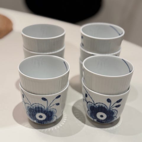 “De smukke Blå Mega Riflet Fyrfadsstager er håndlavet i det fineste lette porcelæn, hvilket giver et smukt lysskær, der fremhæver de håndmalede dekorationer. Stagerne kan også bruges som snackskåle eller for sig selv som en fin dekoration. Blå Mega Riflet er på en gang velkendt og forfriskende.”
