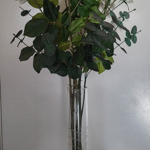 Hæklede roser de her er hvide med en mørkegrøn blade og stilk. Laver efter behov så skriv gerne farven/farverne du er intreseret i, Laver det gerne😊. Prisen er per styk, den er høj da de tager meget tid at lave. Sender dem gerne, og kan også lave afhentning. 30 cm høje.