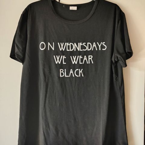 Cool sort t-shirt inspireret af AHS (American Horror Story) med teksten "Normal people scare me". Str. M. Fra K Xuan. Al print fremstår uden fejl eller krakelering (se billede). Altid vasket i parfumefri vaskemiddel og fra et røgfrit hjem.