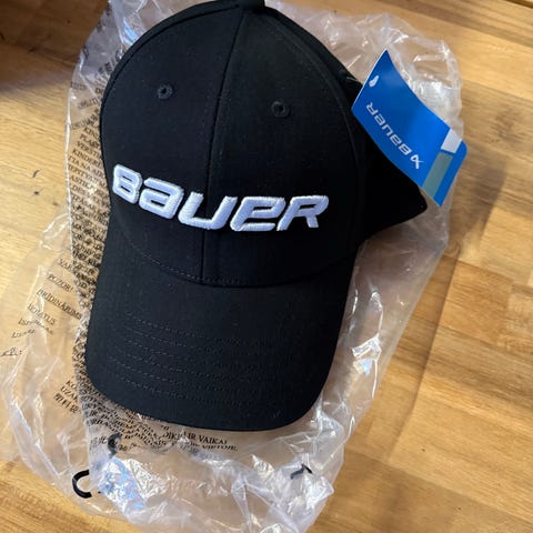 Brugt marineblå Bauer overgangsjakke med hætte, lynlåslukning, lynlåslommer både i siderne og på højre bryst, hvidt KSF-print på venstre bryst og ryggen sa, gråt Bauer og hvidt MM-print på højre bryst samt sort Bauer-print på venstre ærme.