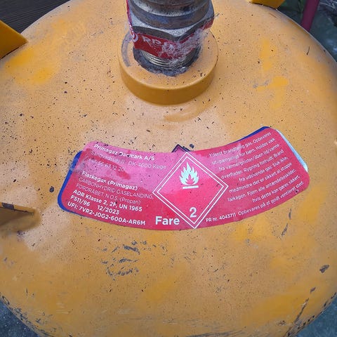 Gasflaske 11 kg fyldt og plomberet