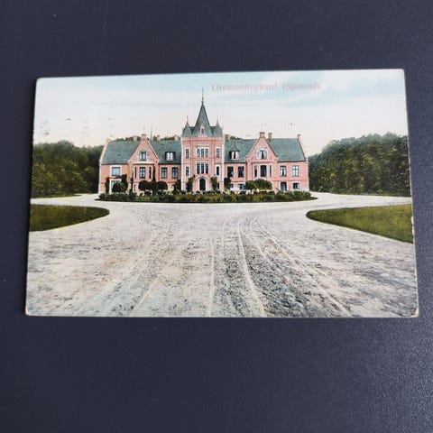 Postkort med Holmegaard Gods ved Næstved. Eet hjørne bøjet. Stemplet i 1911.