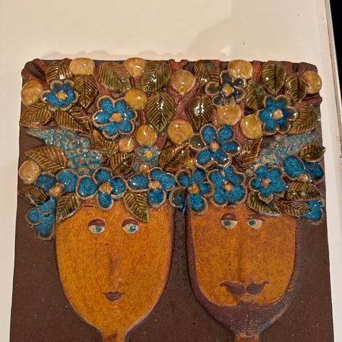 Ophæng, skærebræt (bagsiden) eller bordskåner i teak og porcelæn . Mål 16,5 x 16,5 . Fin velholdt fra 40’erne - 50’erne af svenske Stig Lindberg.