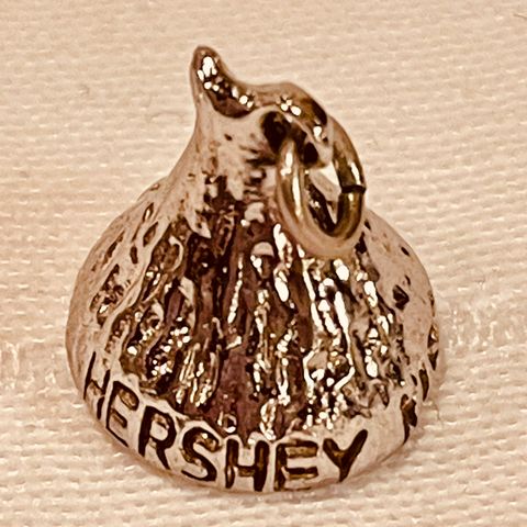 Vedhæng forestiller Hershey Kiss-chokolade og er fremstillet i sterlingsølv. Det er produceret af JC Ferrara i 1960’erne. Det vejer ca. 2,5 gram og måler 8 mm i bredde og 10 mm i højde. Jeg har også en større udgave.