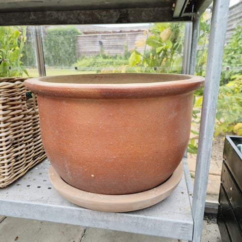 Sælges inklusive stor glaseret keramik krukke