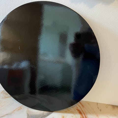 Rund bord plade i røget eg fra Firm Living. Dia 40 cm, passer til trådkurv/bord fra Firm Living.