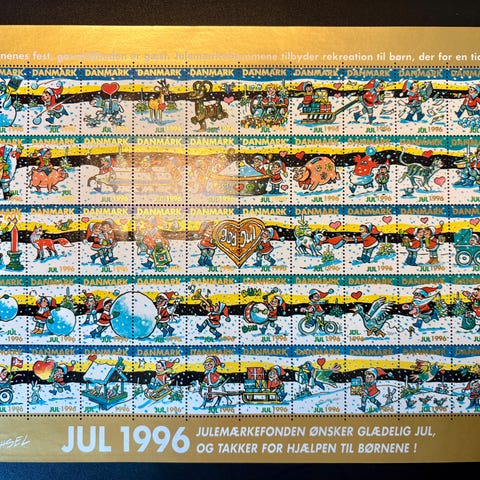 Julemærkekunstner Eva-Maria har skabt motiverne på Julemærket 1989 og er udført som papirklip, og farverne er i de helt traditionelle julefarver. På arkkanten har årets kunstner forfattet et julevers, hvor der kikkes frem mod lysere tider. 50 mærker i helark.