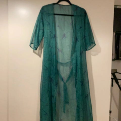 En smuk solgul strand kimono.helt ny.mef flæse på ærmerne.kan sendes.