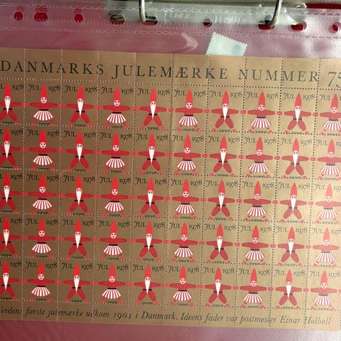 Kunstnerne Jannie Henriette Sande og Bo Linnemann står bag julemærket i 1984 under titlen Julens blomster.