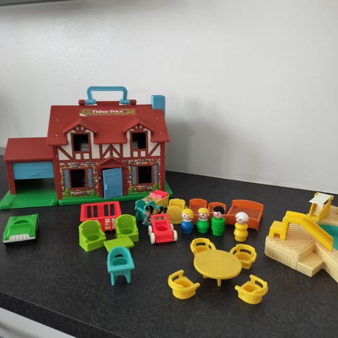 Det lækreste foldbare Fischer Price little people dukkehus med lækkert solidt bærehåndtag.