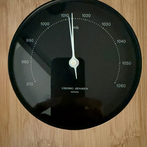 Helt nyt Georg Jensen Barometer i stål med hvid skive.