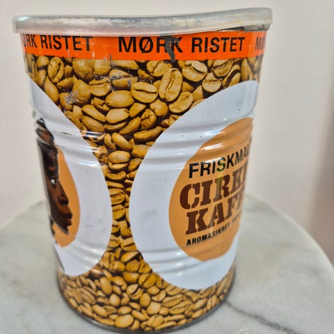 Flot Cirkelkaffe-kaffedåse i kobber-farve! I god stand uden stød/mærker! Den skal lige gøres ren med noget Basso!