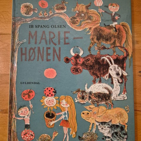 Klassiker, Retro, "Mariehønen" af Ib Spang Olsen. Billedbog udgivet af Gyldendal i 1969. “En fin og sjov bog om mariehønens længsel efter at møde en artsfælle. Et ønske som ustandselig skuffes ved tilsynekomsten af andre ovale væsner med prikker: birkesboller, hestehoveder eller damp fra et lokomotiv. Heldigvis kommer der en rigtig mariehøne til sidst. Bogen blev oprindelig skabt som historie til Ib Spang Olsens legendariske tegnede fjernsynsfortællinger.” Hardback i fin stand!