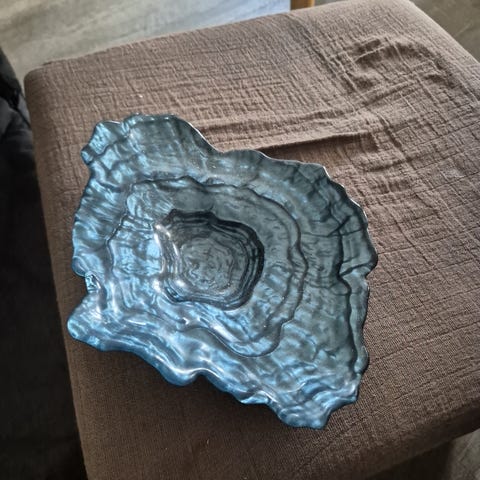 Vintage serveringsfad eller frugtfad, ravfarvet presset glas.