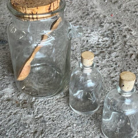 - Lille karaffel med korklåg. 25 kr