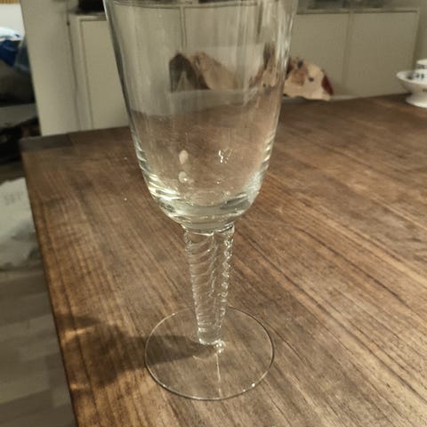Antik glas pokal med opalin kant fra omkring 1895.