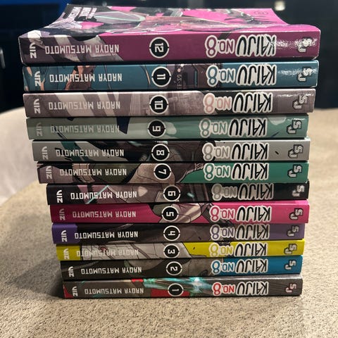Manga,jujutsu kaisen 1,attack on titan 1-7,kaiju NO 8 1, boruto 1-3 og 7,