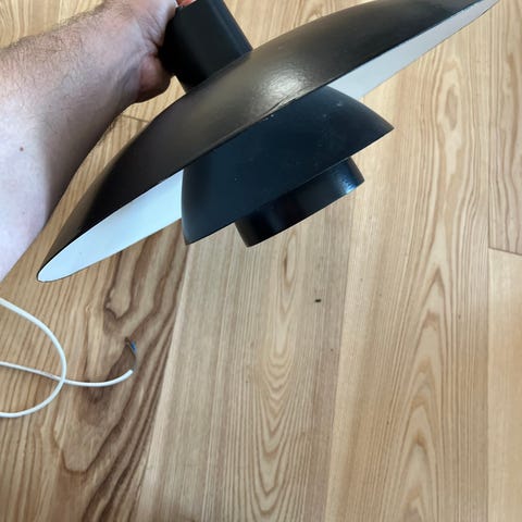 Poul Henningsen PH 4/3 pendel med hvide metal skærme. Lampen er fra 1990'erne