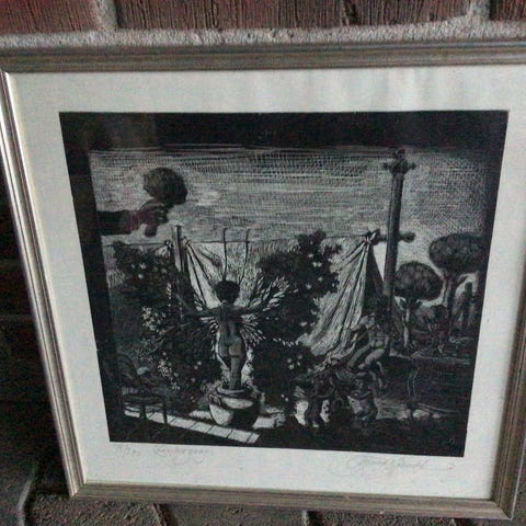 Samlerobjekter - Boligindretning - Retro og Vintage raderinger, dybtryk - Grafisk kunst - Arno Malinowski, kendt keramiker- smykkedesigner for Georg Jensen
