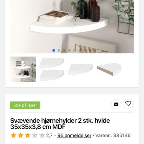 Stor hjørnehylde med hyldeknægte. Det er ikke nemt at finde en stor hjørnehylde, så denne er lavet specielt. Hylden er brugt som bamsehylde - bamserne følger ikke med. Hylden måler ca. 83 x 86 cm og går henholdsvis ca. 52 og 49 cm ud i rummet fra væggene. Hyldeknægtene måler 30 x 35 cm. Samlet pris for hylde, 3 x hyldeknægte og skruer til montering af hylden på hyldeknægte - sørg kun selv for skruer til væggen.