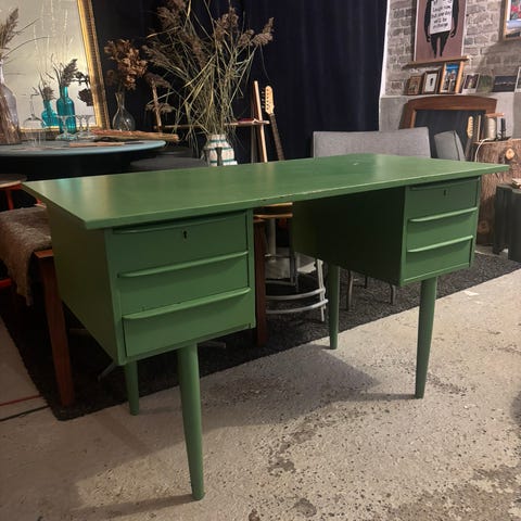 Vintage dameskrivebord i florentinsk stil🌸 Cremefarvet med alt hvad det kan trække af guld, håndmalede blomster, udskæringer og en stribe af den fine pistaciegrønne nuance vi alle elsker🤩