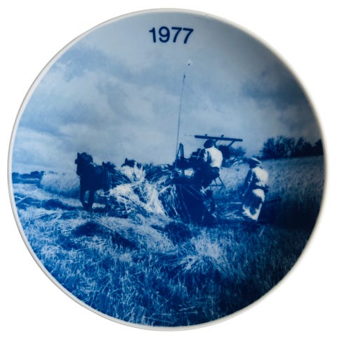 Landbrugsplatte nr. 6 - 1980 - Tipvogn med heste - Danish Porcelain Printing
